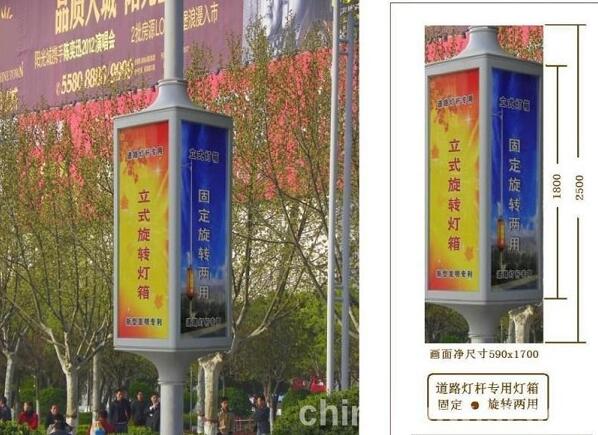 旋轉燈箱外形線條流暢,造型高檔美觀,旋轉速度均勻,動感強烈,其動態的自動旋轉效果,提高了廣告的視覺沖擊力,加強了廣告的層次感。